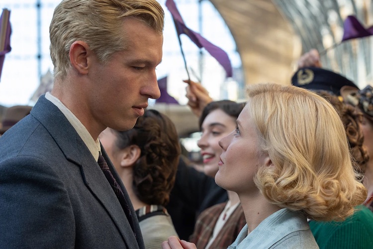 Callum Turner and Hadley Robinson in “The Boys in the Boat.” © 2023 Metro-Goldwyn-Mayer Pictures Inc. All Rights Reserved.