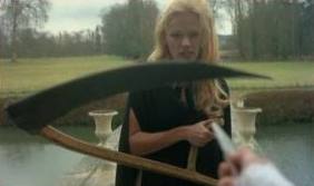 Some say Rollin’s best, this film features his most important actress, Brigitte Lahaie. A country chateau surrounded by a moat is home to a female blood-cult. An unlucky wanderer picks the wrong door to knock on. The two beautiful women who are home seduce him then warn him to get out before nightfall when the rest of the blood drinkers arrive – too late. The photography and imagery are striking: a group of upper class women drinking blood out of crystal glasses in a slaughter house, the statuesque Lahaie in black cape with scythe, and a chateau surrounded by a moat.