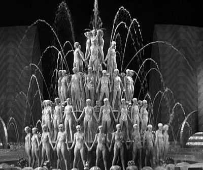 Berkeley goes well over the top in Footlight Parade. James Cagney plays a Broadway musical director and Joan Blondell his secretary who has fallen in love with him. The musical number “By A Waterfall” has incredible overhead shots of the girls doing a ballet in a large pool of water and features Berkeley’s famous “Human Waterfall.” The final number, “Shanghai Lil,” ventures into an opium den populated by prostitutes that work the waterfront.